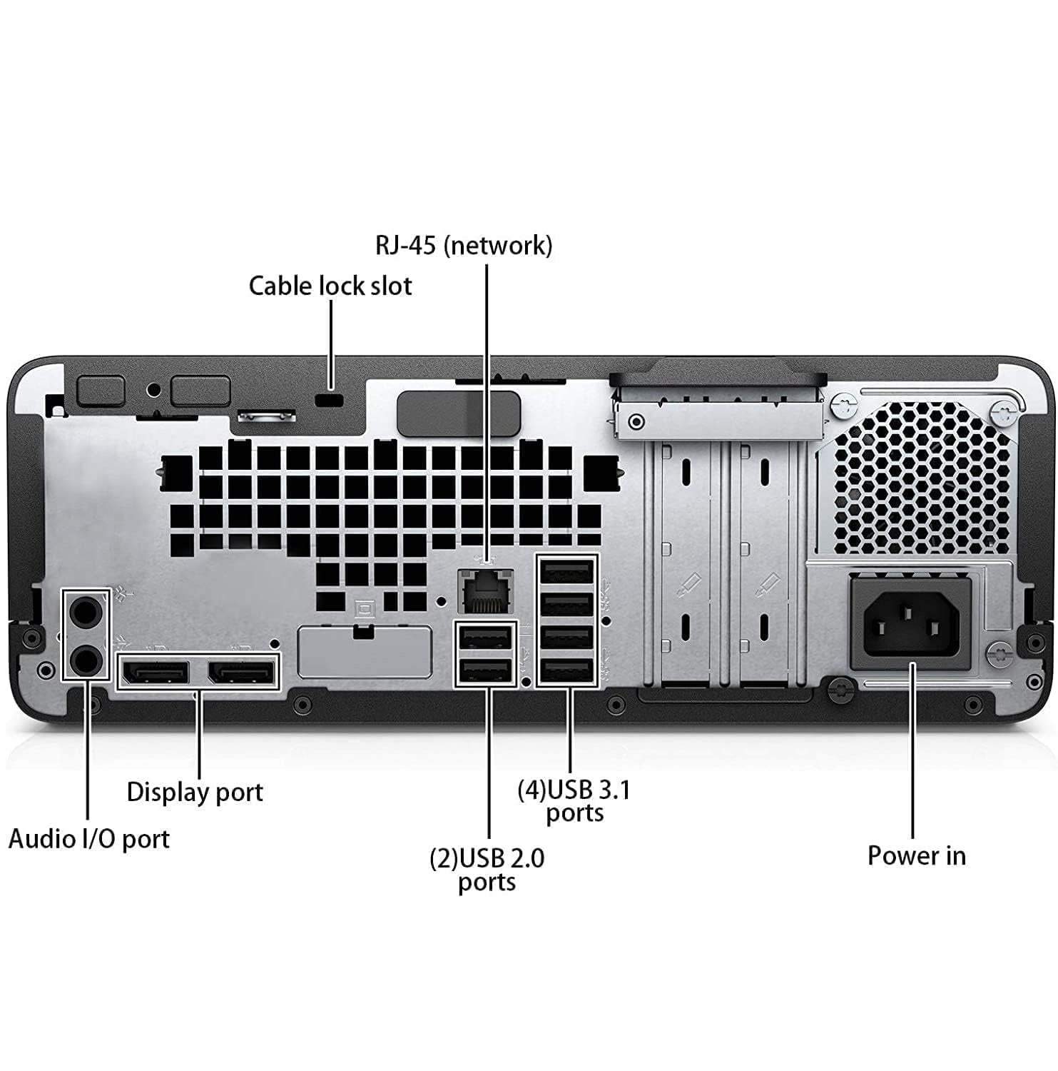 | I/O Ports | Front: 1 headphone; 1 headset connector; 1 USB 2.0; 1 USB 2.0 (fast charging); 1 USB Type-C(charging); 2 USB 3.1 Gen 2 Rear: 1 audio-in; 1 audio-out; 1 power connector; 1 RJ-45; 2 USB 2.0; 2 DisplayPort1.2; 2 USB 3.1 Gen 1; 2 USB 3.1 Gen 2 |