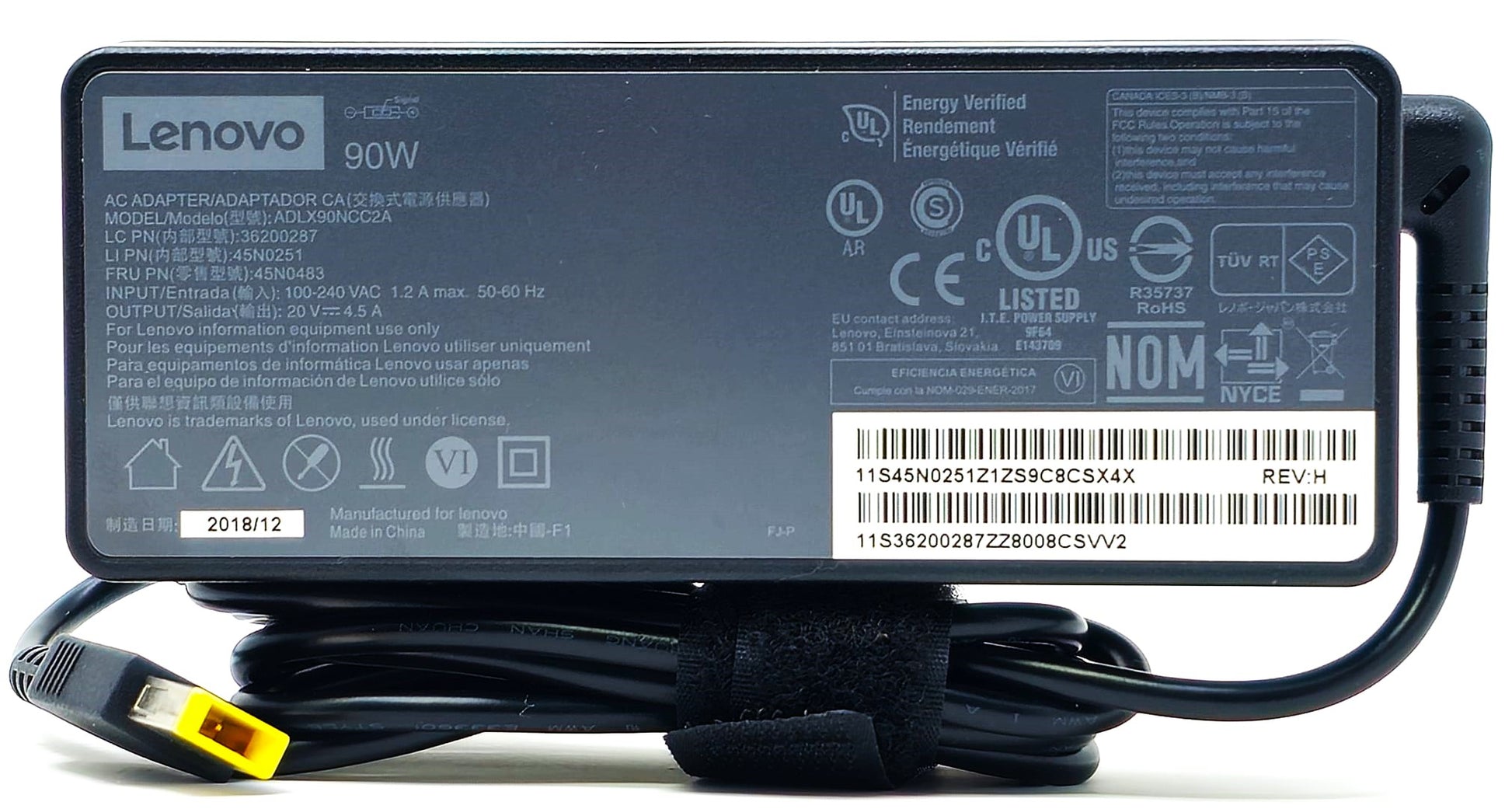 The Lenovo 90W AC Adapter Charger with Yellow Square Tip is a high-quality, reliable power adapter designed for Lenovo laptop